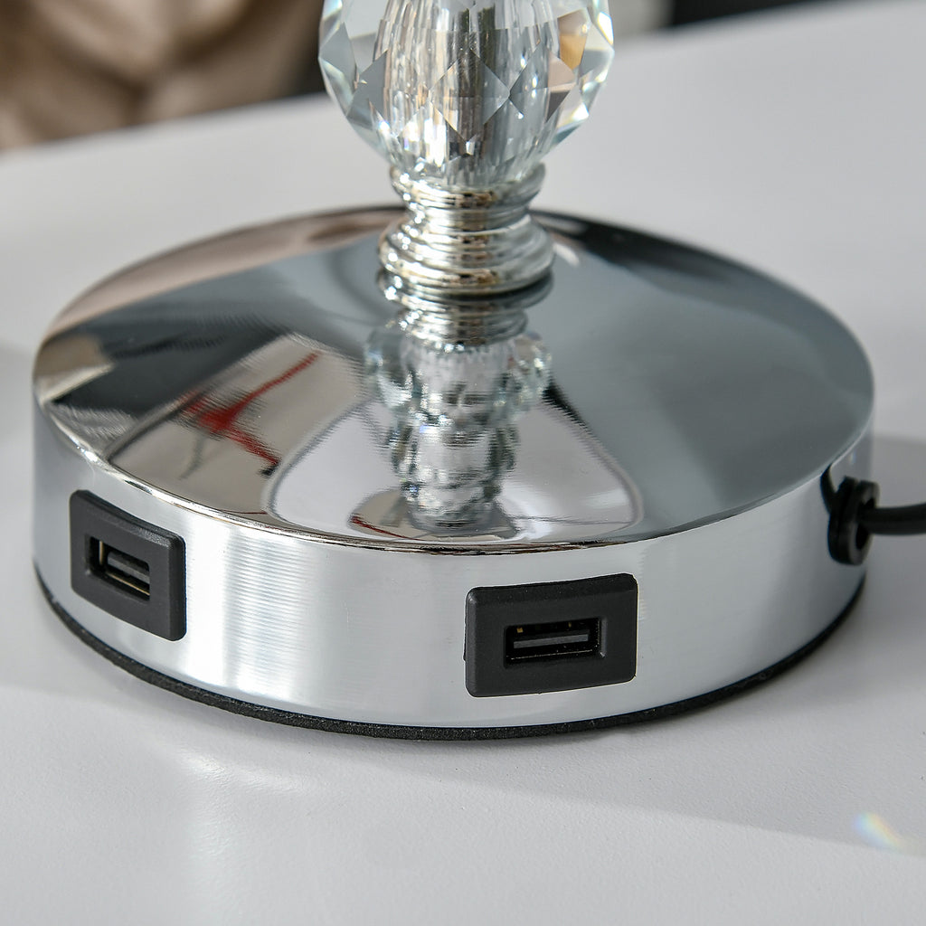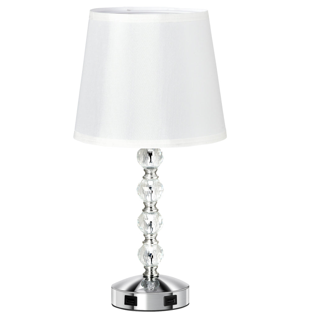 Bringen Sie mit dieser Tischlampe einen Hauch von Glamour in jeden Raum! Der Sockel mit Kristallen erzeugt einen funkelnden Effekt, während der Lampenschirm aus Stoff die Beleuchtung warm und einhüllend macht. Sie eignet sich ideal als Leselampe im Wohnzimmer und Büro oder einfach als Nachttischlampe. Dank der 2 USB-Buchsen können Sie Ihre Geräte einfach aufladen und Sie können die Lampe wahlweise mit dem Schalter oder mit dem Touch-System an der Basis einschalten.