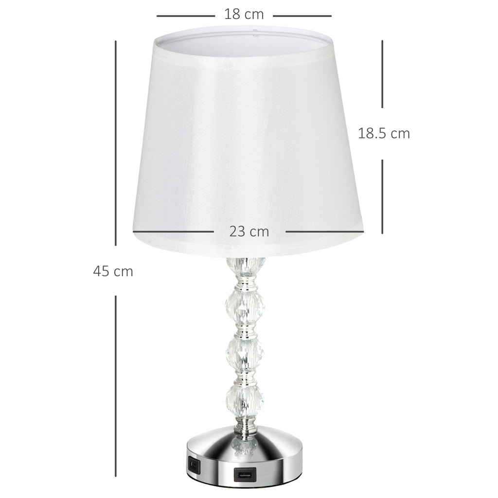 Tischlampe 2 USB-Anschlüsse Ø23x45 cm E27 Lampenschirm aus weißem und silbernem Stoff