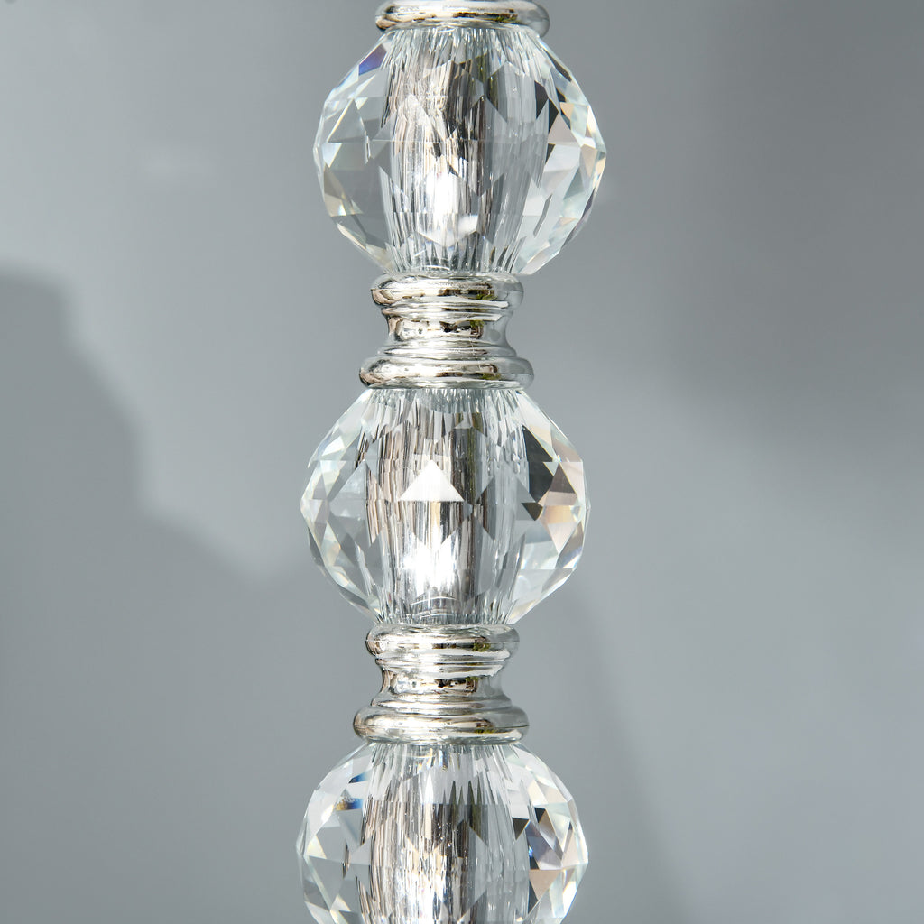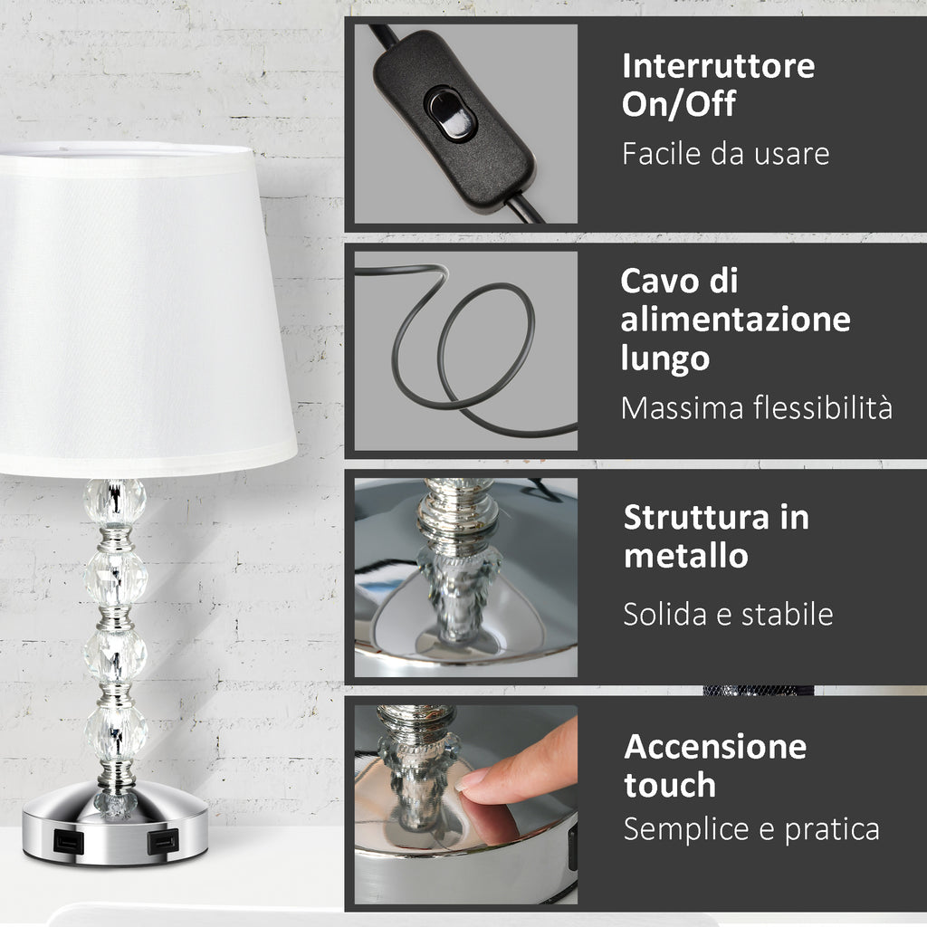 - SOCKEL MIT KRISTALLEN: Die Tischlampe hat einen originellen Sockel mit Kristallen, die einen funkelnden Effekt erzeugen, und einen glatten Stoffschirm mit Seideneffekt, der einen Hauch von Eleganz verleiht. Die Metallstruktur garantiert perfekte Stabilität und Gebrauchsfestigkeit.