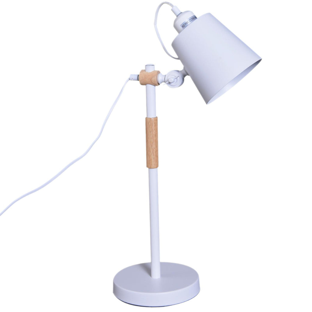 Tischlampe mit verstellbarem Winkel aus Metall und weißem Holz 30x18x62 cm