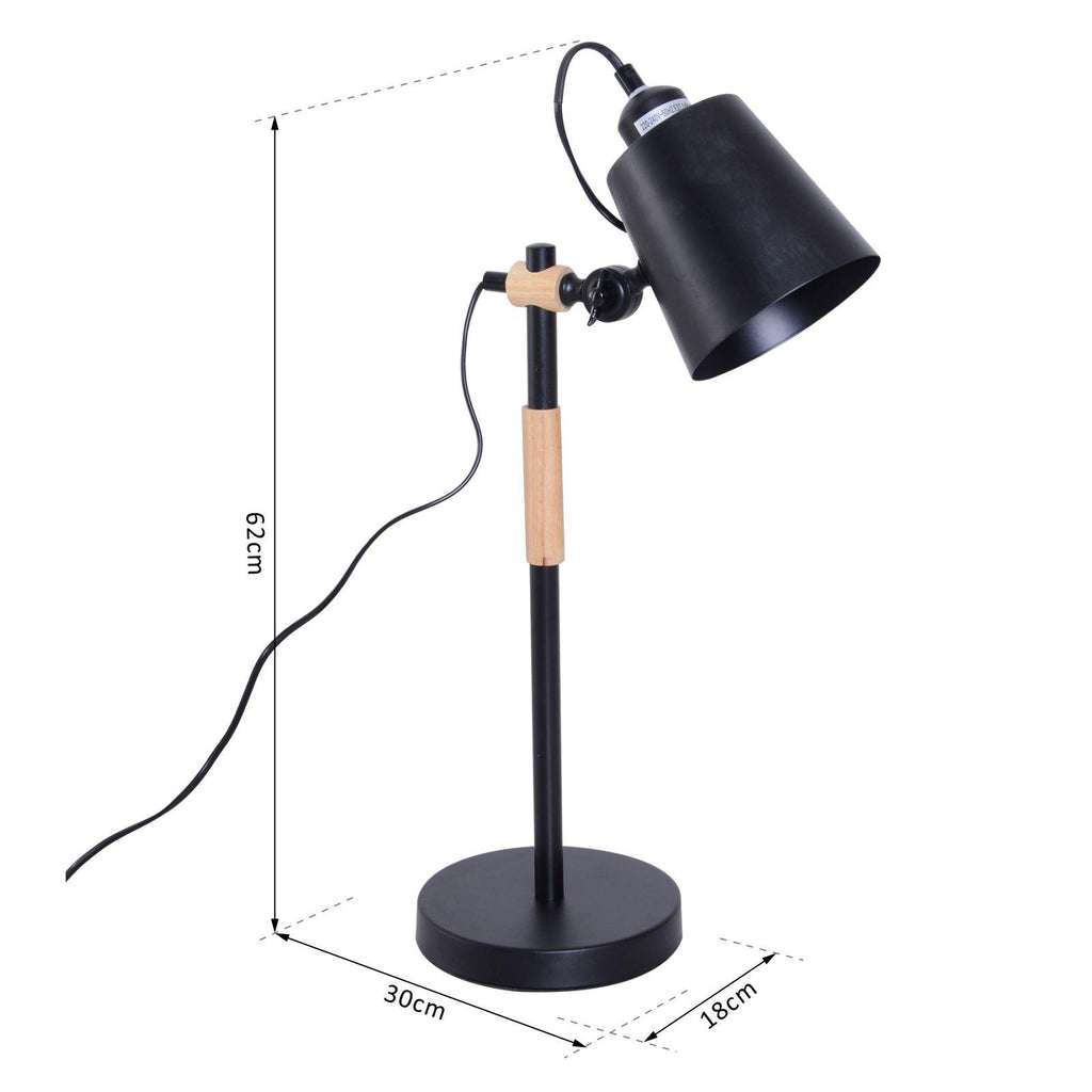 Tischlampe mit verstellbarem Winkel aus Metall und schwarzem Holz 30x18x62 cm