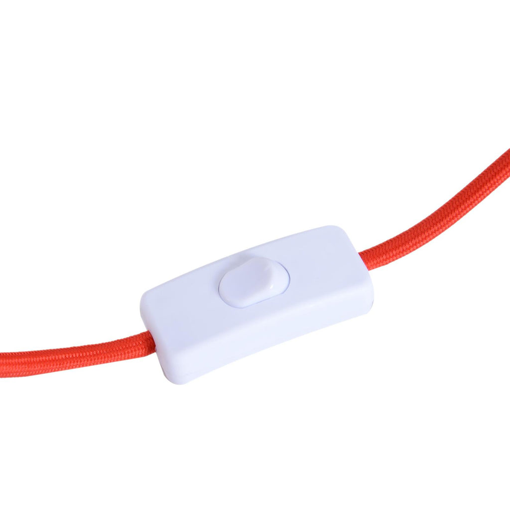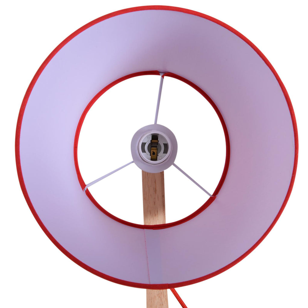 Schlichtes, aber elegantes Aussehen, der rote Lampenschirm schafft eine entspannte Atmosphäre.