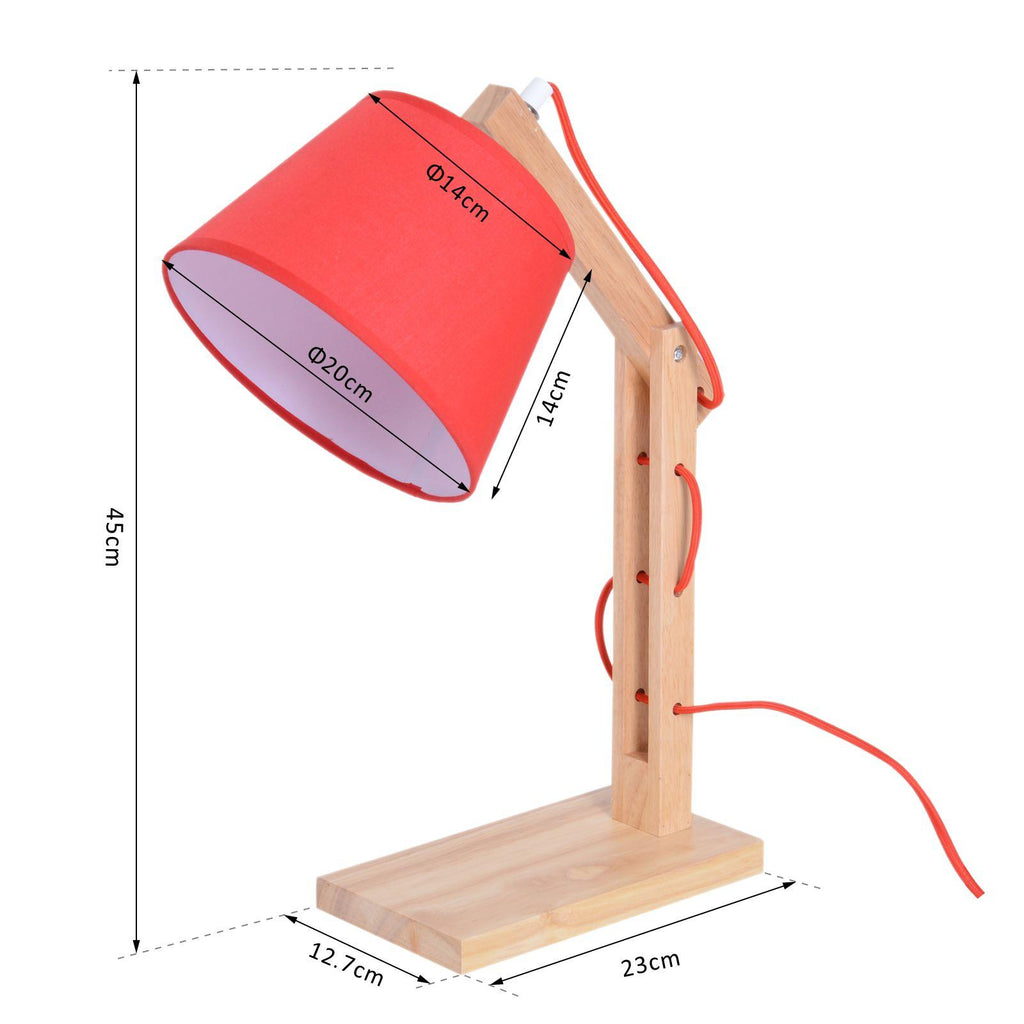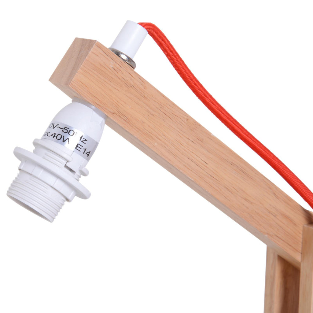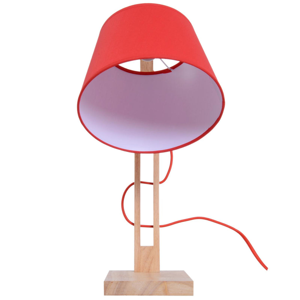 Tischlampe mit verstellbarem Arm in Eiche und rotem Lampenschirm