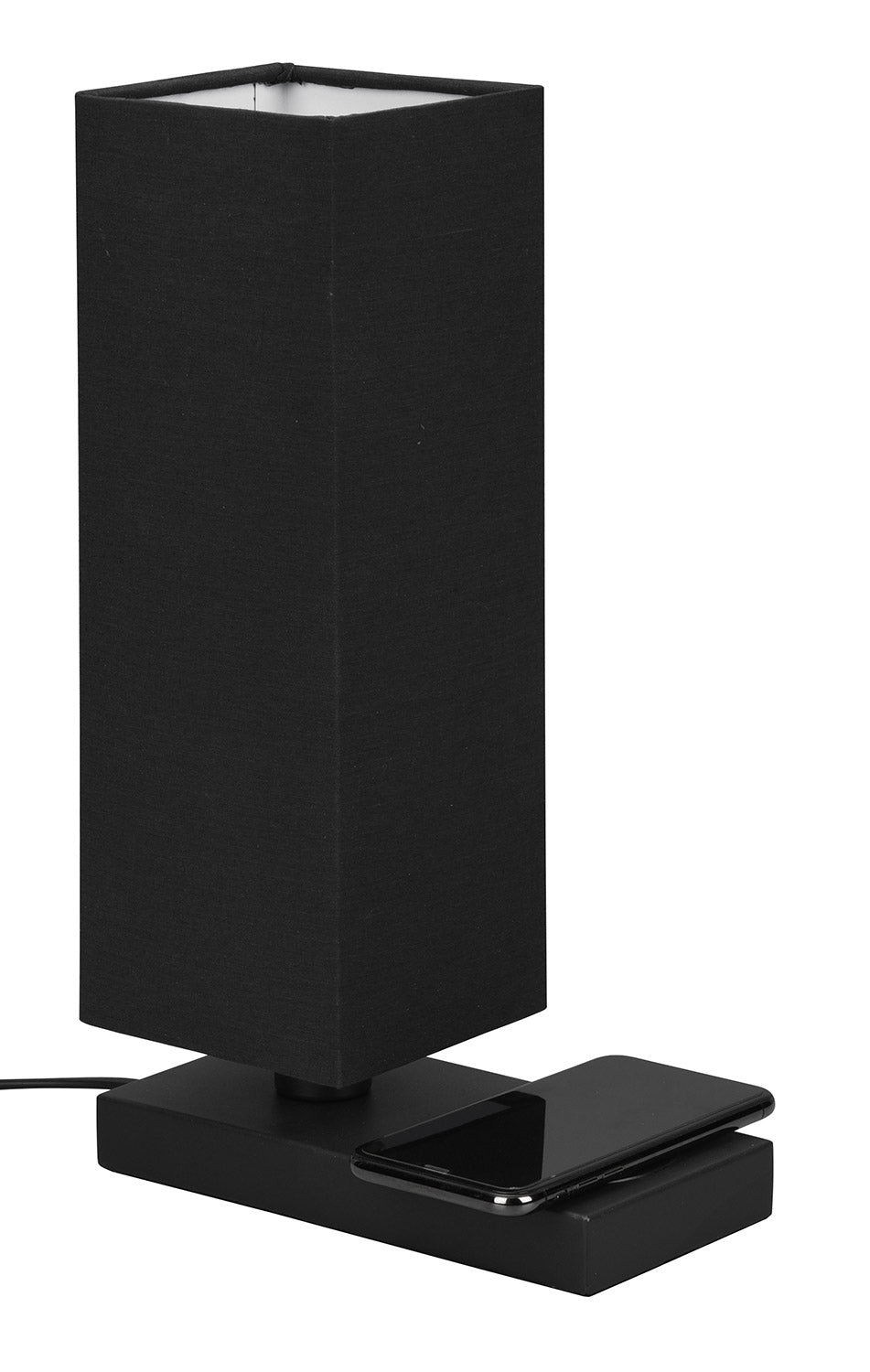 Haley Lampada Da Tavolo Nera con Paralume con Base X Ricarica Induttiva Cellulare con Interruttore Touch H. 35Cm