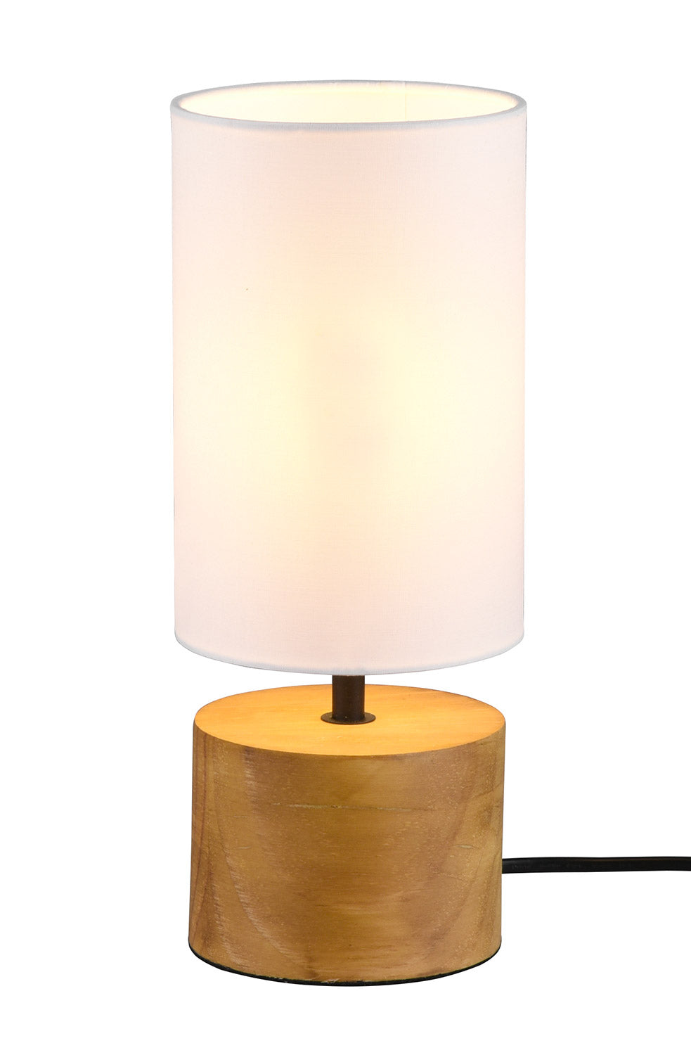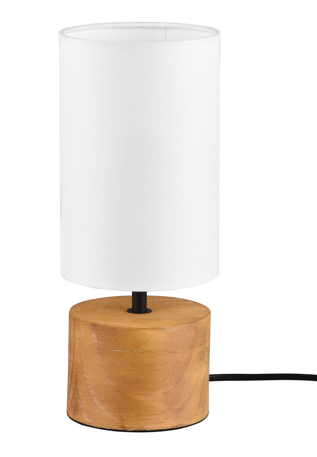 Woddy Lampada Da Tavolo Base Cilindro Legno e Paralume Bianco H. 30Cm X D. 12Cm