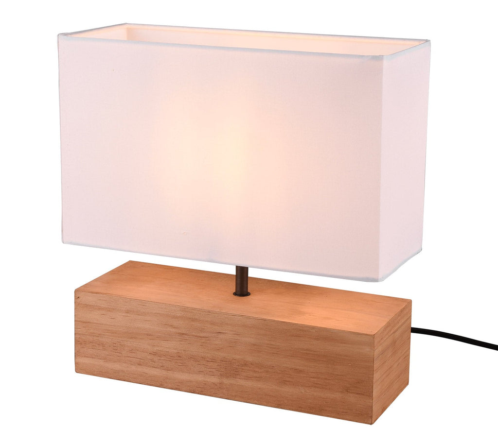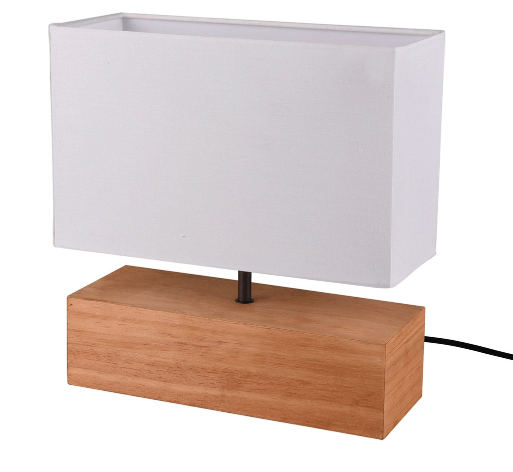 Woody Lampada Da Tavolo Grande Base Legno Naturale e Paralume Bianco L. 30 Cm X H. 30Cm