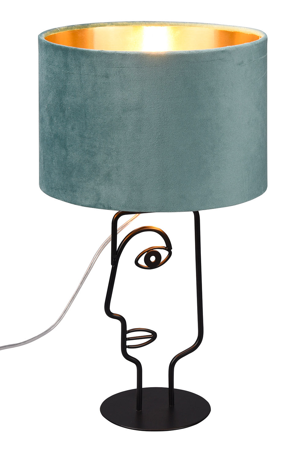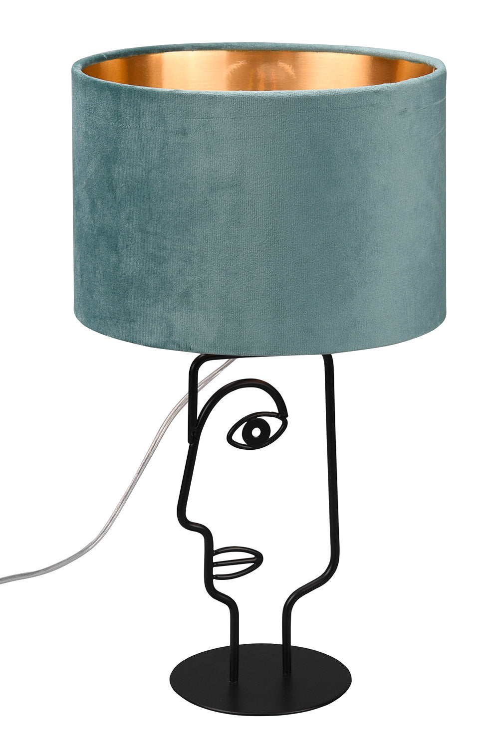Sultan Lampada Da Tavolo Metallo Nero con Paralume Velluto Azzurro e Oro H. 42Cm