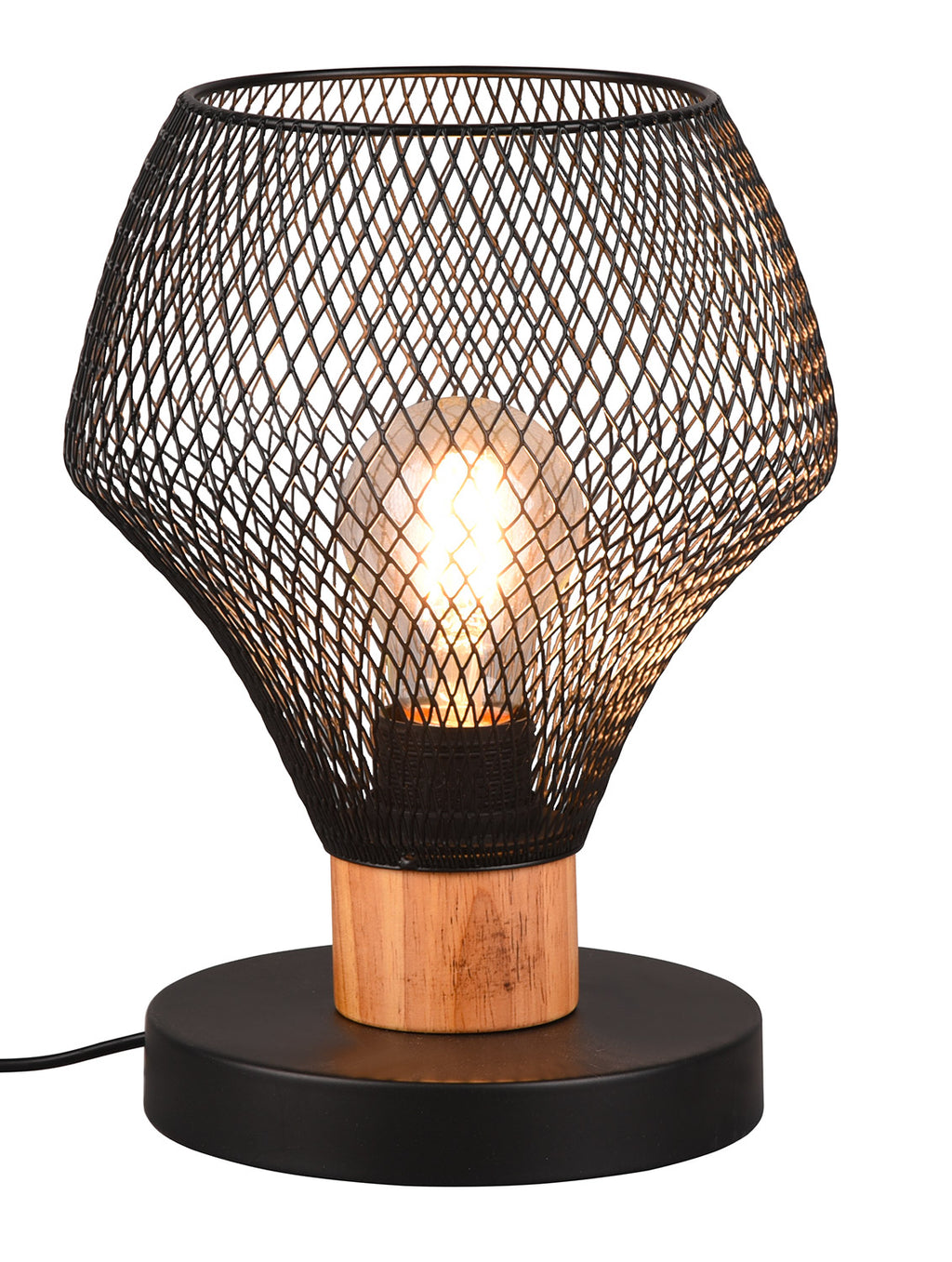 Valeria Lampada Da Tavolo Metallo Gabbia Nera con Particolare in Legno Naturale H. 25Cm