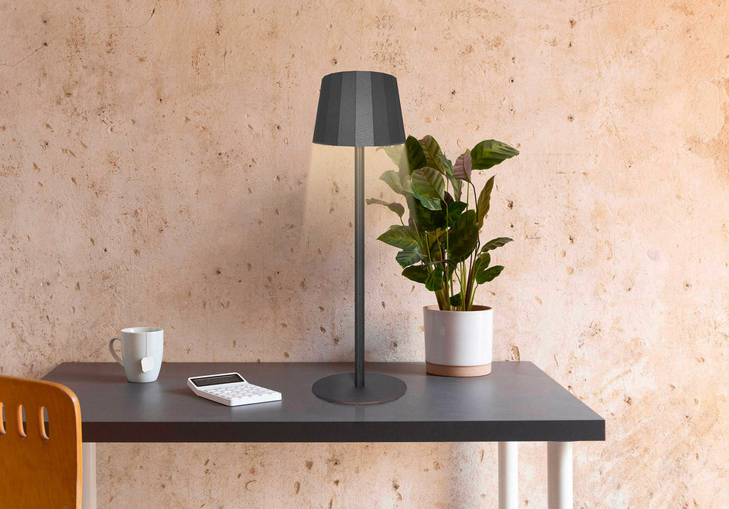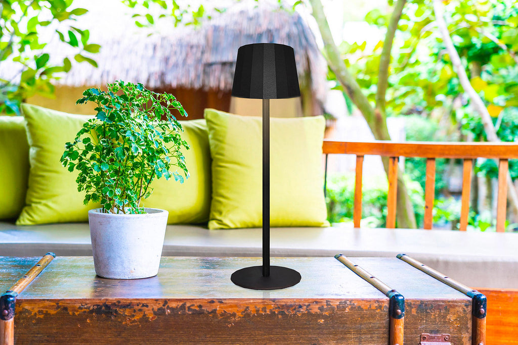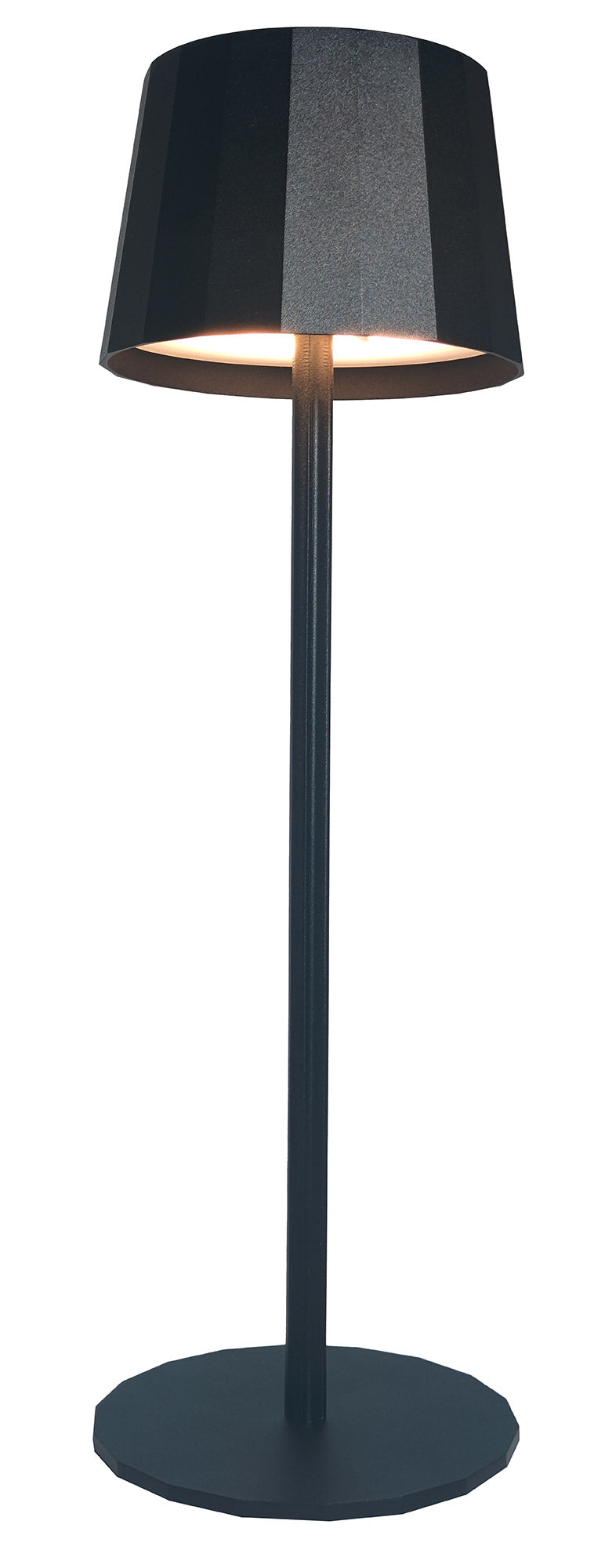 Questa lampada da tavolo è realizzata in ferro per la base e lo stelo, mentre il paralume è in alluminio, conferendole un aspetto elegante e moderno. È dotata di funzione dimmerabile e accensione touch, senza la necessità di fili. Inoltre, può essere ricaricata tramite porta USB. Le sue dimensioni sono di 11,5 cm di diametro e 38 cm di altezza, con un colore predominante Nero.
