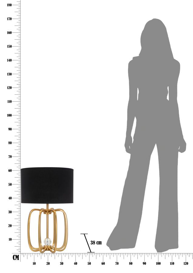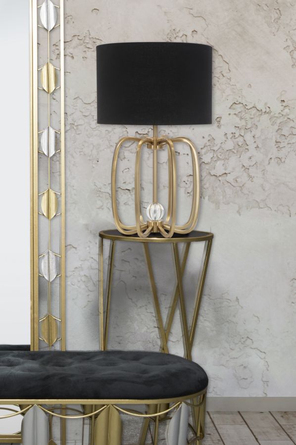 Glam Ball Ø38x62 cm Tischlampe aus schwarzem und goldenem Kunststoff und Polyester-Eisen