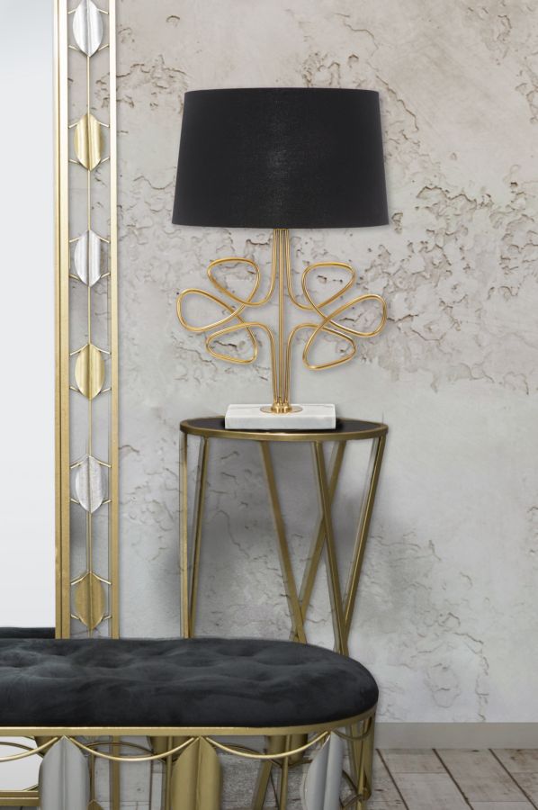 Der Glam-Style kombiniert schicke und extravagante Details. Tischlampen, die sich durch die Kombination von Gold und hellen Farben oder dunkleren Farben wie Schiefer und Schwarz auszeichnen.