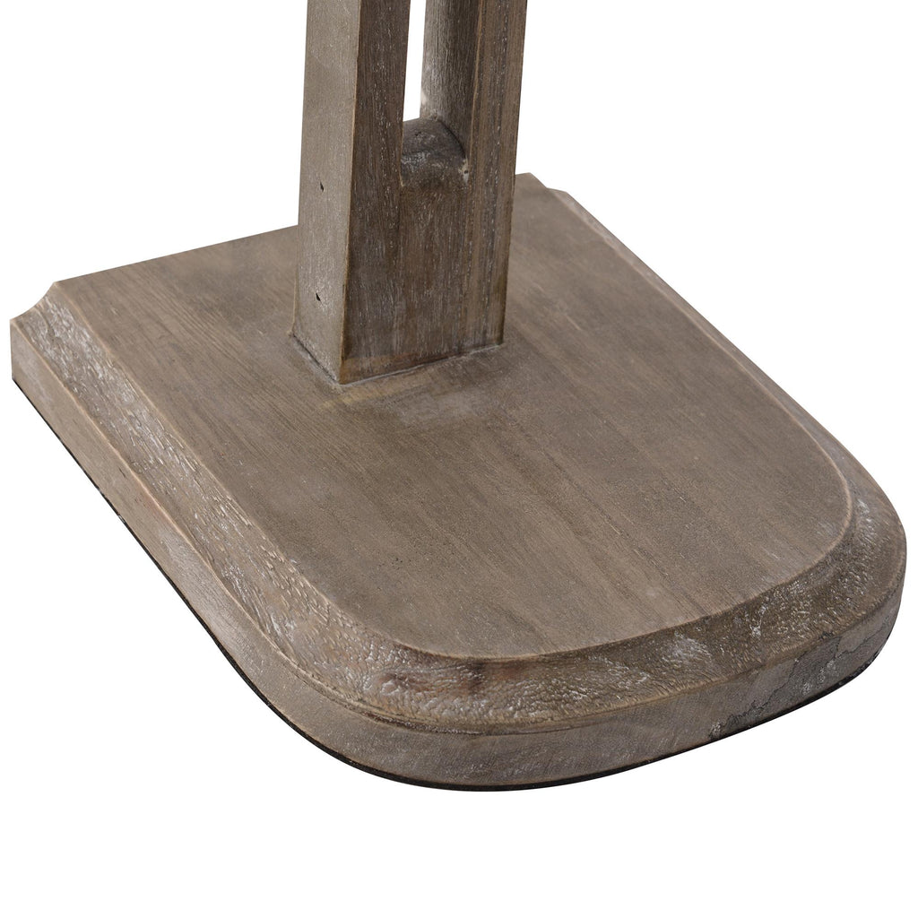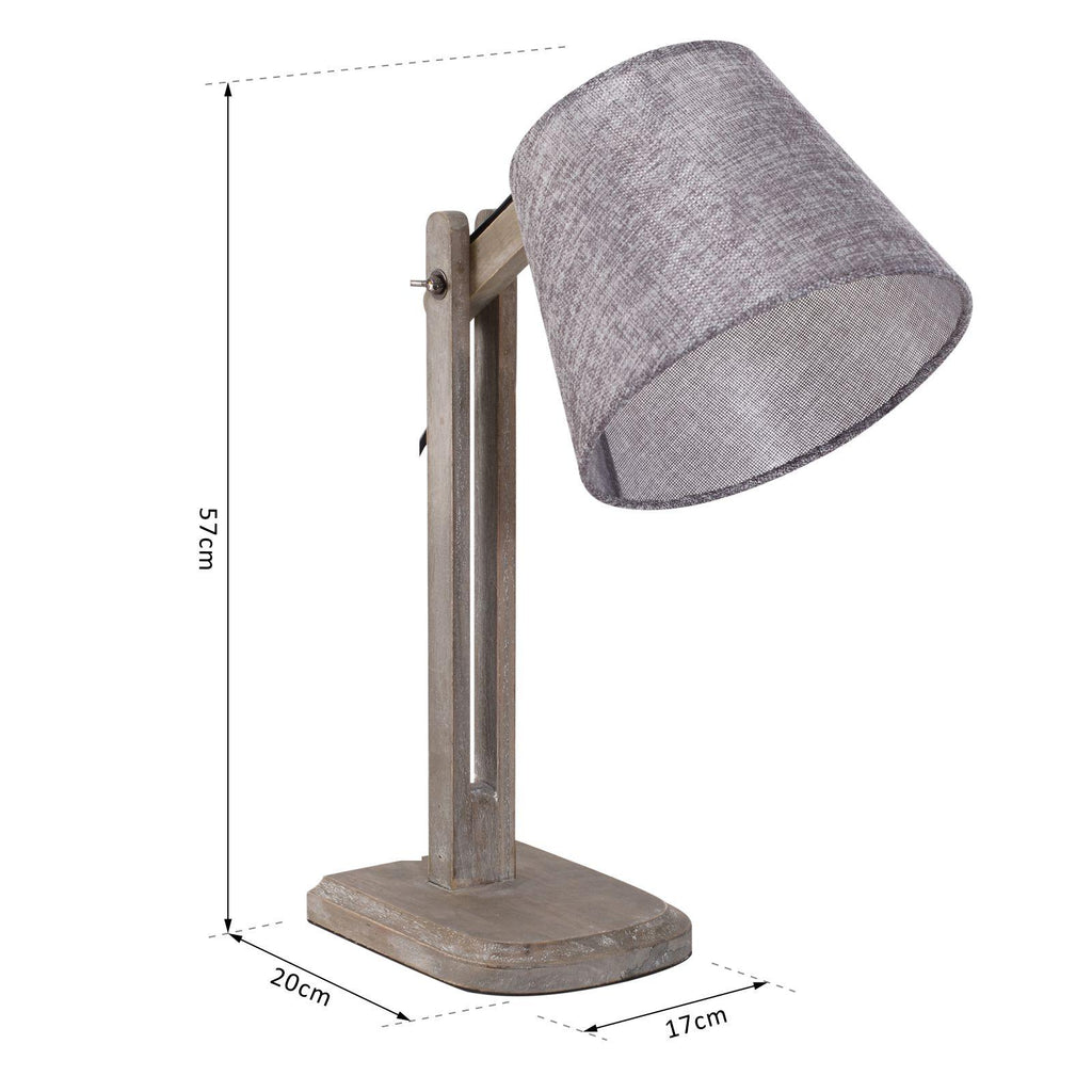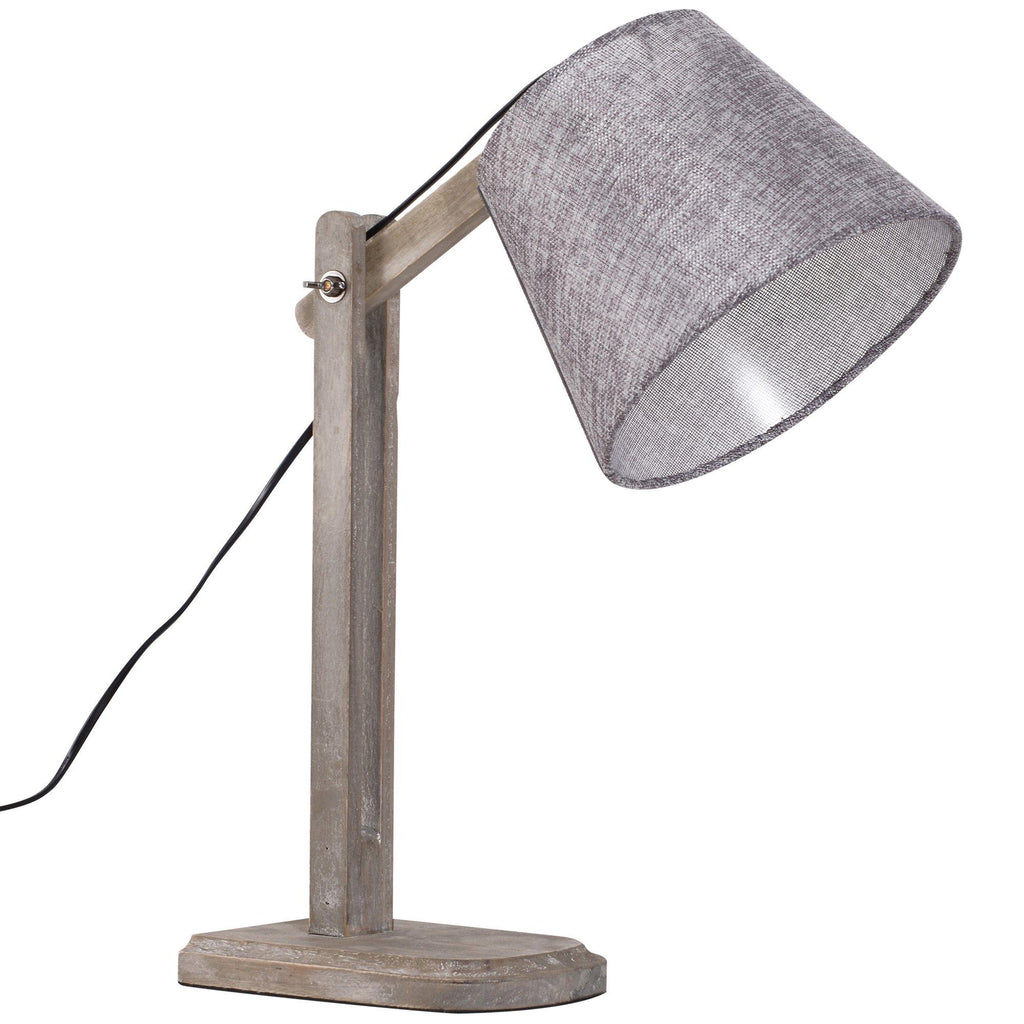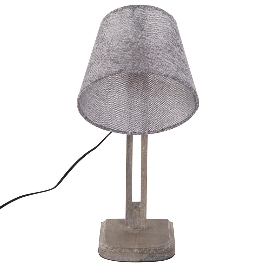 Tischlampe Lampenschirm aus Leinen und grauem Paulownia-Holz