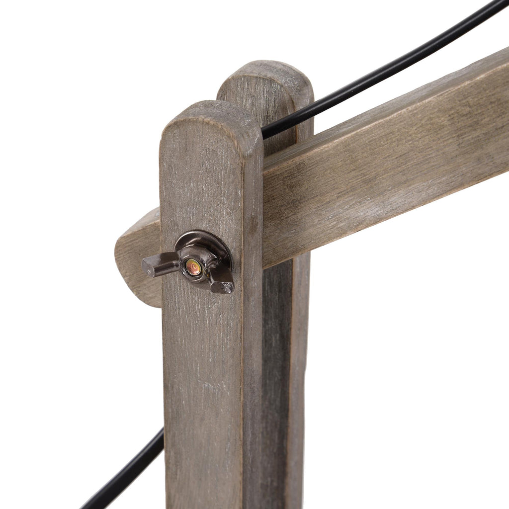 Der Schirm aus Leinenstoff und der Holzständer verleihen ihm einen schönen modernen Stil.