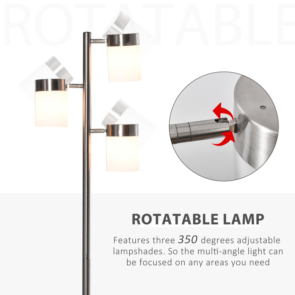 Verleihen Sie Ihrer Umgebung mit dieser Design-Stehlampe eine elegante und raffinierte Atmosphäre. Ideal für die Dekoration des Wohn- oder Schlafzimmers, verfügt sie über drei Lampenschirme aus Glas, die Sie nach Belieben einstellen können. Der Marmorsockel ist rund und breit, um Ihnen maximale Stabilität zu bieten.