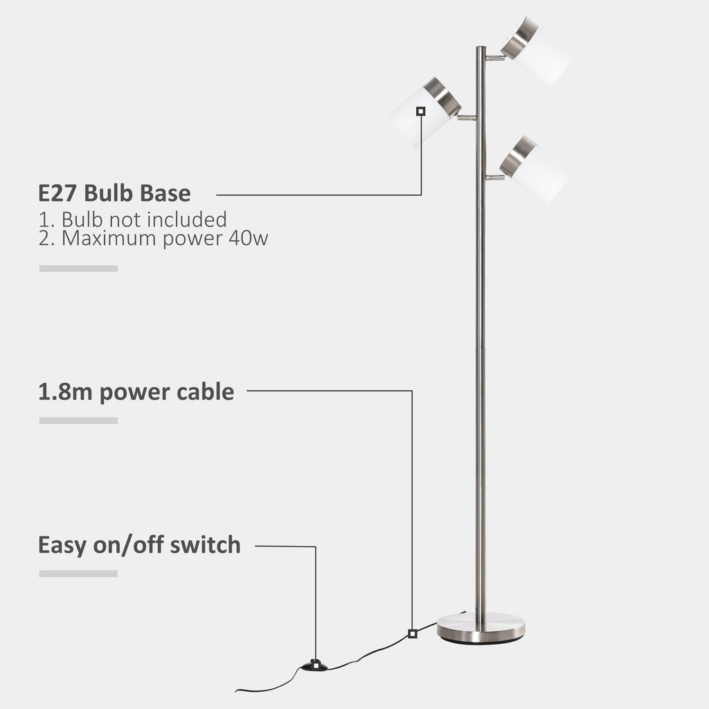 Stehlampe 3 Lampenschirme 38-52x25x165 cm E27 40W Silber