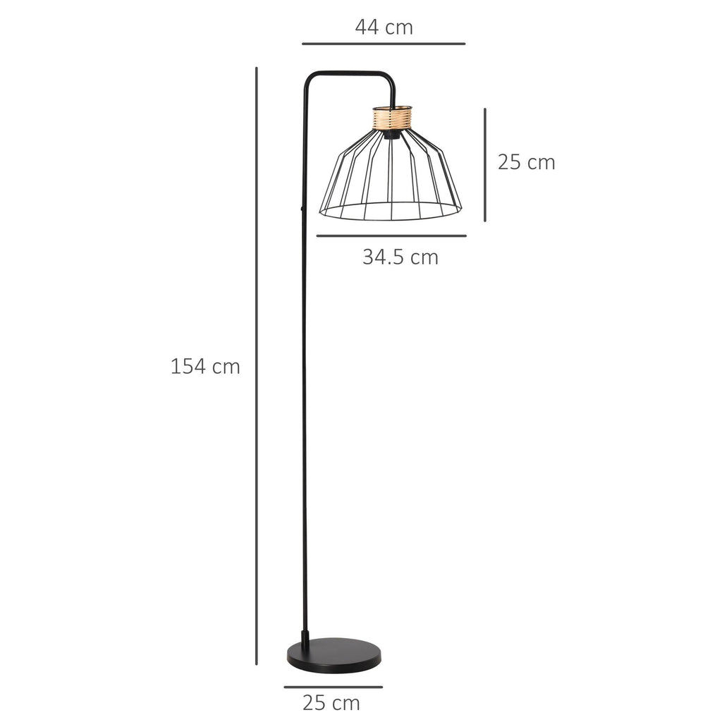 Stehlampe 44x34x154 cm aus Metall und schwarzem Rattan