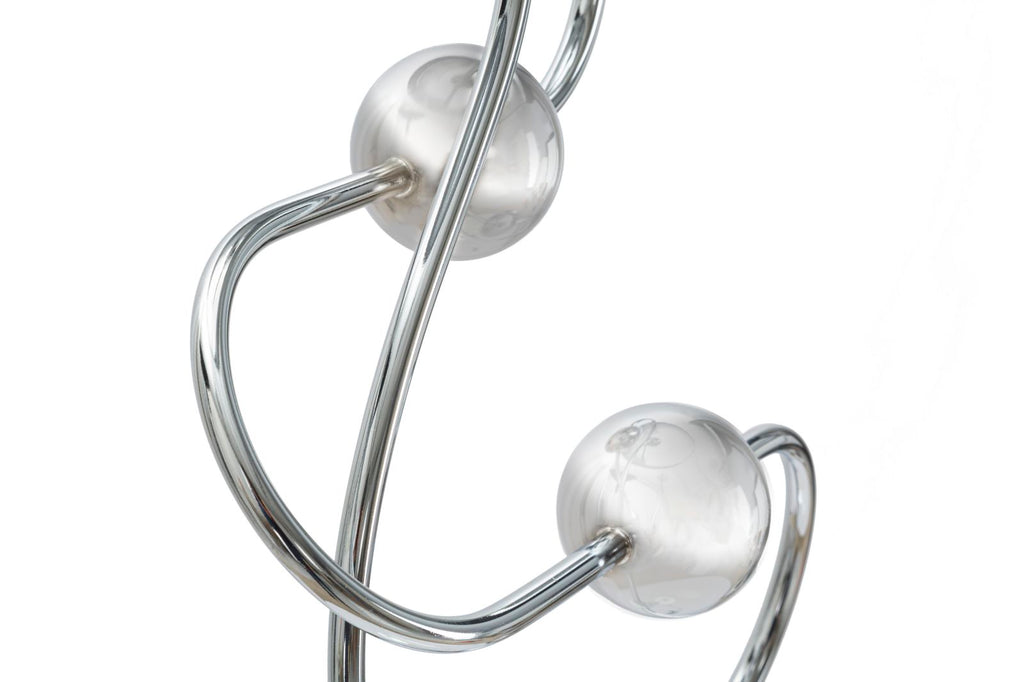 Elegante Stehlampe im Glam-Stil aus silbernem Metall und Lampenschirm aus schwarzem Stoff. Die besondere lineare und geometrische Metalldekoration, die mit Kugeln verziert ist, verleiht jeder Art von Möbeln einen Hauch von Einzigartigkeit.