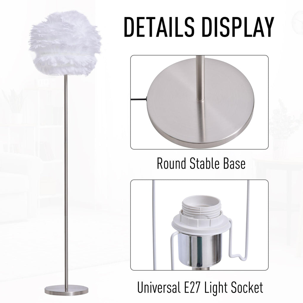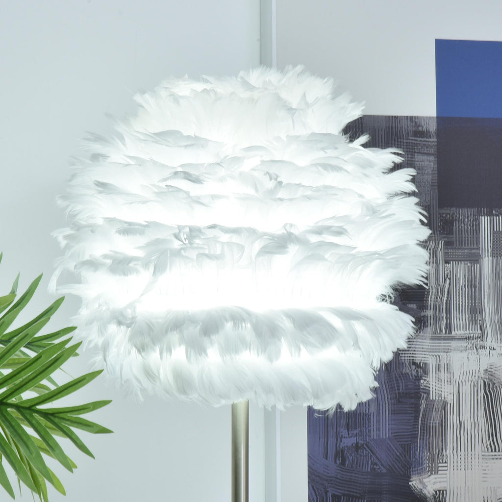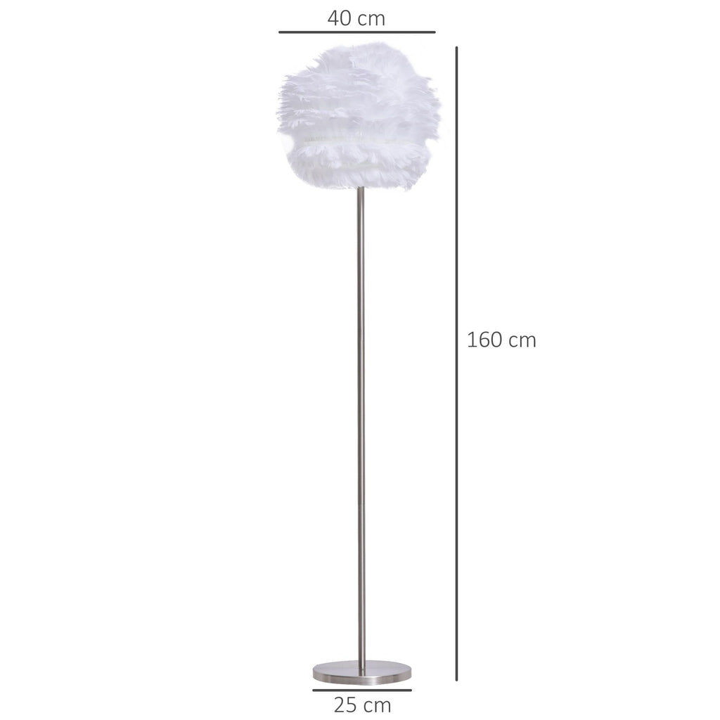Stehlampe mit E27-Lampenschirm in weißen Federn