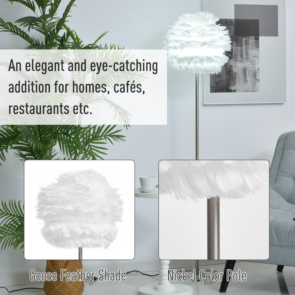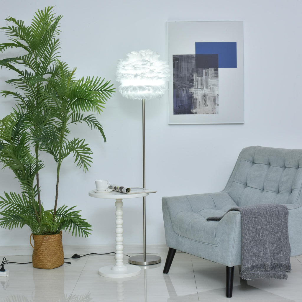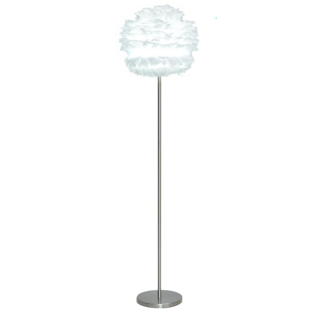 Stehlampe mit E27-Lampenschirm in weißen Federn
