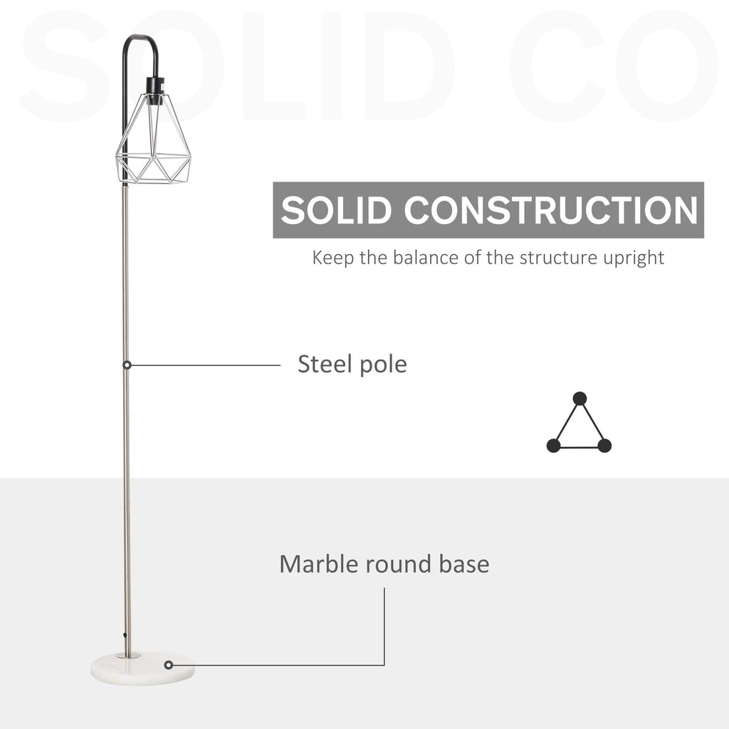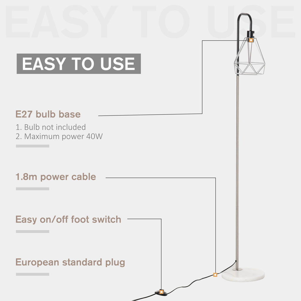 Bringen Sie mit dieser Stehlampe eine elegante Beleuchtung in Ihr Zuhause und Büro. Die Metallstange ist widerstandsfähig und der Marmorsockel sorgt für maximale Stabilität, während der Lampenschirm aus Eisendraht ihr eine originelle Note verleiht. Dank des praktischen Fußschalters einfach zu bedienen, ist diese Stehlampe perfekt, um Ihre Räume stilvoll zu beleuchten.