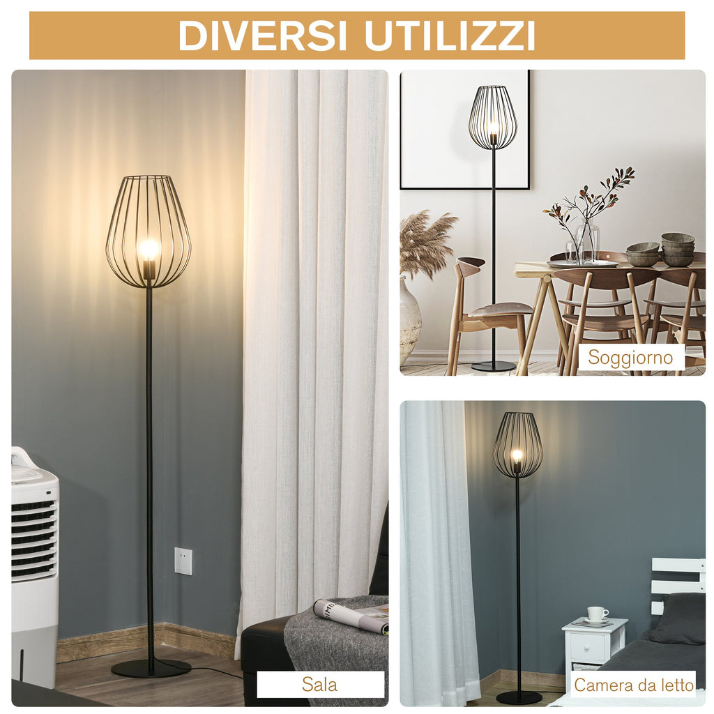 Stehlampe mit Lampenschirm aus Metall E27 Ø27,5x159 cm Schwarz
