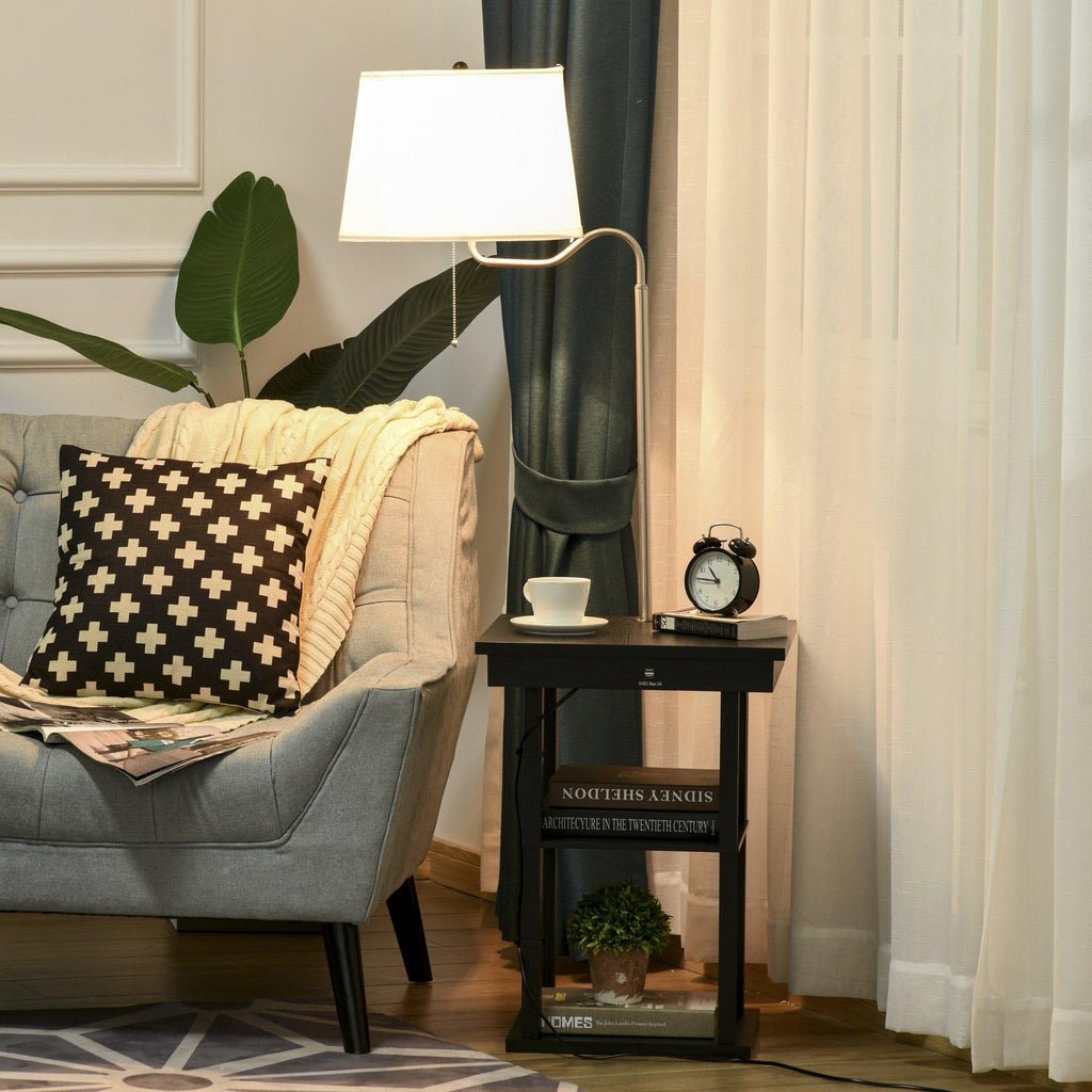 Stehlampe mit Tisch und 2 USB-Anschlüssen 44,5 x 44,5 x 144,5 cm aus schwarzem Metall