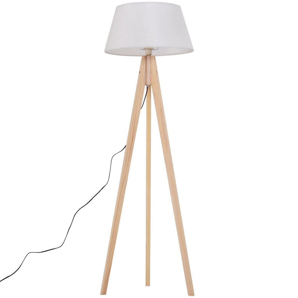 Stehlampe mit dreibeinigem Lampenschirm aus cremefarbenem Stoff 146 cm