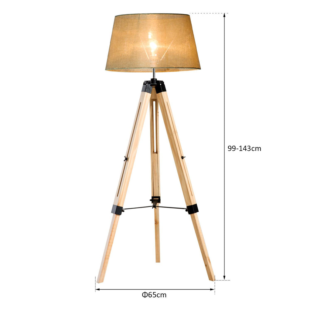 Design Stehlampe mit Holzstativ höhenverstellbar Beige