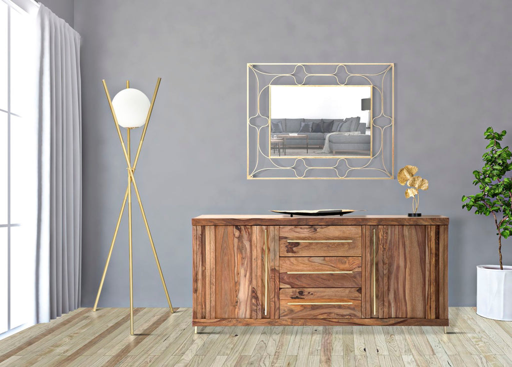 Glamy Stehlampe x Ø55x155 cm in Eisen und Gold und weißem Glas
