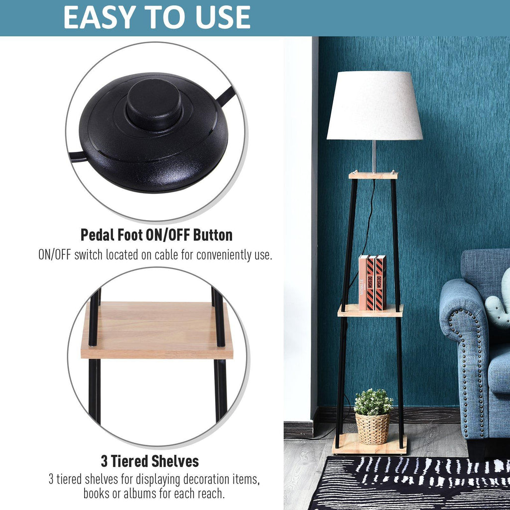 Stoff-Stehlampe mit 3 Regalen 40x40x160 cm Beige