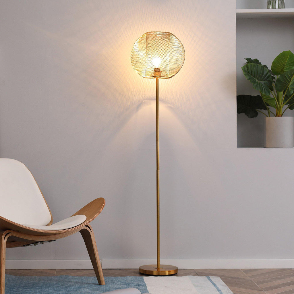 - ATTRAKTIVES DESIGN: Diese Stehlampe ist perfekt, um Ihrem Zuhause Charakter zu verleihen. Die goldene Struktur und die goldenen Oberflächen haben einen glamourösen Look, der sich leicht in jedes Dekor integrieren lässt, und der Lampenschirm aus Metall lässt Ihr Zimmer funkeln.