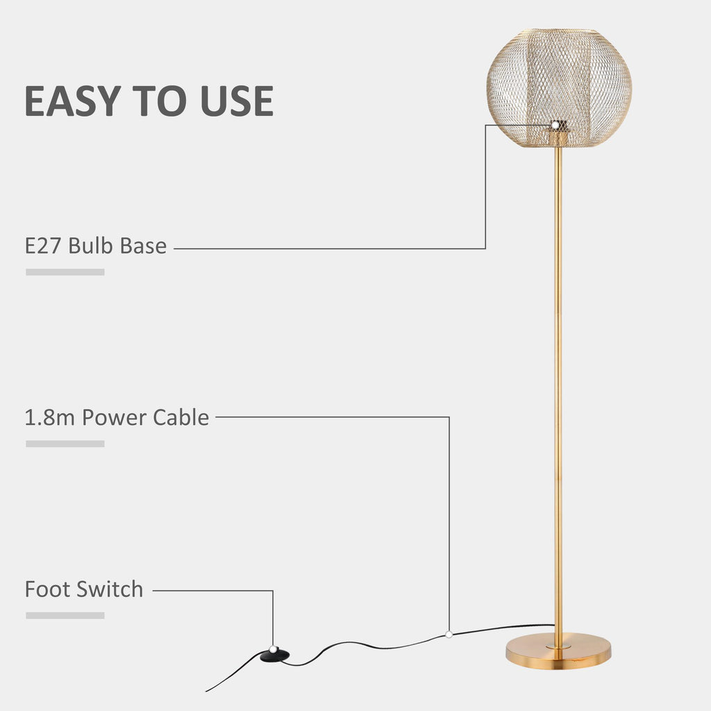 Diese Stehlampe ist perfekt, wenn Sie jeden Raum in Ihrem Zuhause zum Strahlen bringen möchten, vom Wohnzimmer bis zum Schlafzimmer. Die gesamte Struktur besteht aus Metall mit Gold-Finish und ist mit einem kugelförmigen Lampenschirm und einem großen Sockel ausgestattet, um Ihnen maximale Stabilität zu bieten. Worauf warten Sie noch, verleihen Sie Ihrem Zuhause mit Ihrer neuen Stehlampe eine szenografische Beleuchtung!