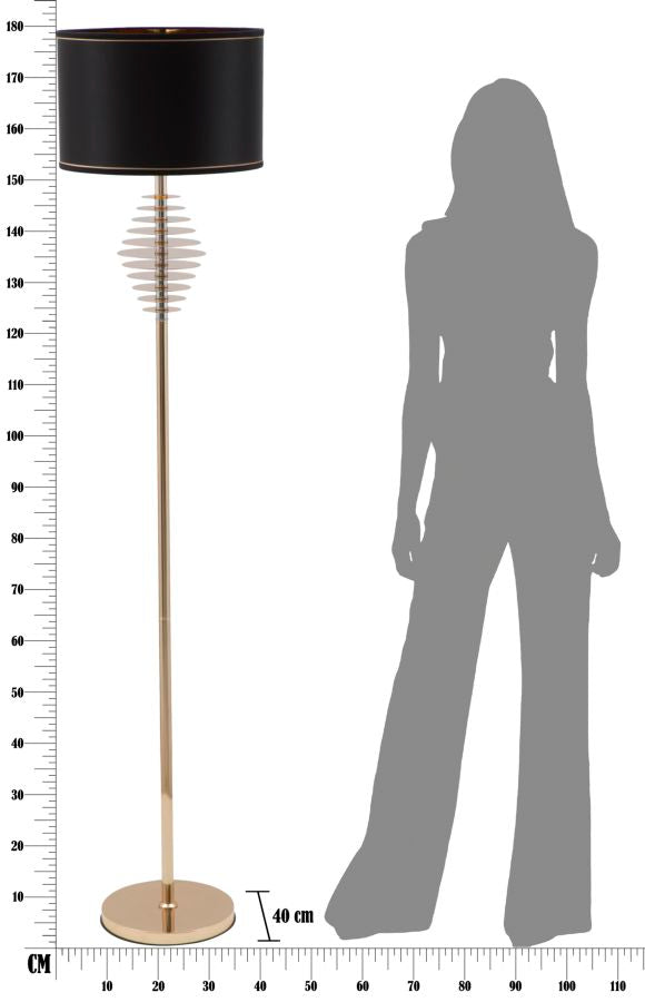Runde Glam-Stehlampe Ø40x180 cm aus schwarzem und goldenem Kunststoff und Polyester-Eisen