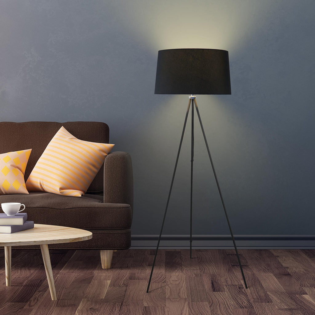 Dreibein-Stehlampe aus Metall mit schwarzem Leinenschirm Ø48x156 cm