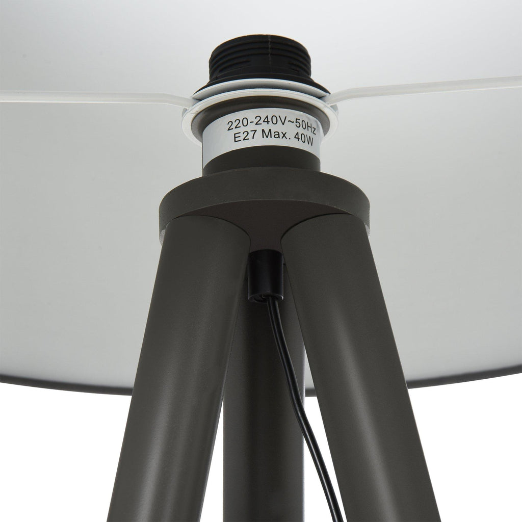 Tripod Stehlampe aus Holz mit grauem E27 Ø52x153 cm Lampenschirm