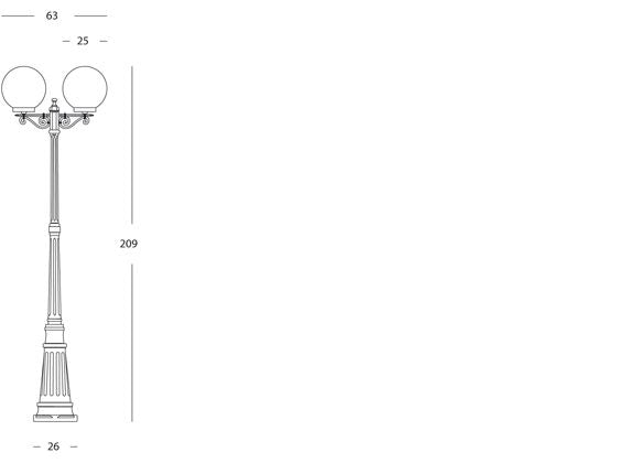 Stangenlampe mit zwei Lichtern für den Garten, schwarze Farbe, Durchmesser 25 cm, für die Kugellinie im Freien