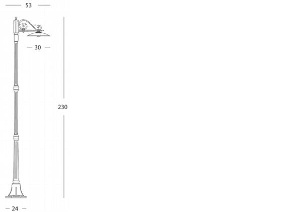 Hochmastlampe für den Garten in grauer Farbe für den Außenbereich in der antiken flachen Linie. Struktur aus Aluminium-Druckguss. Korrosionsschutzbehandlung. Epoxid-Pulverlackierung. Weiß lackierte und emaillierte Aluminiumplatte. Passende Lampenfassungsabdeckung aus Aluminium mit Silikongummidichtung. E27-Lampenfassung aus Porzellan. Inklusive Befestigungszubehör. Geeignet für Energiesparlampen mit Silikonschutz. Stromversorgung 230 V ~ 50 Hz. Anschlussgerät. Bodenbefestigungsdreieck. Schutzklasse: IP43 Maximale Lampenleistung: 25W