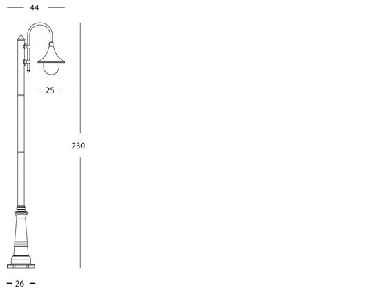 Rostfarbene Hochmast-Gartenlampe für die Outdoor-Deluxe-Linie. Struktur komplett aus Aluminium-Druckguss. Korrosionsschutzbehandlung mit Epoxidpulverlackierung. Diffusor aus transparentem Thermoplast. Reflektor aus Aluminium. Schablone für Bodenbefestigung und Edelstahlbolzen. Internes Netzkabel und wasserdichtes Verbindungsgerät. Messingschrauben und Anziehwerkzeuge. Lampenfassung aus Porzellan mit Fassung E27. geeignet für Glüh- und Energiesparlampen. Lampe nicht enthalten. Stromversorgung 230V ~ 50Hz. Schutzklasse: IP43 Maximale Lampenleistung: 60W