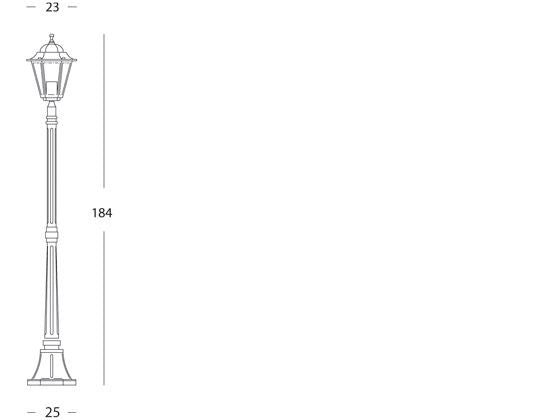 Mittelgroße Stablampe für den Garten in Schwarz und Gold für die Merlet-Linie im Freien. Struktur aus Aluminium-Druckguss. Korrosionsschutzbehandlung. Epoxid-Pulverlackierung. Diffusoren aus transparentem Glas. Passende Lampenfassungsabdeckung aus Aluminium. E27-Lampenfassung aus Porzellan. Inklusive Befestigungszubehör. Geeignet für Glühlampen. Für Energiesparlampen geeignet. Max. Lampenhöhe 200 mm. Stromversorgung 230 V ~ 50 Hz. Anschlussvorrichtung. Bodenbefestigungsdreieck. Schutzklasse: IP43 Maximale Lampenleistung: 100W