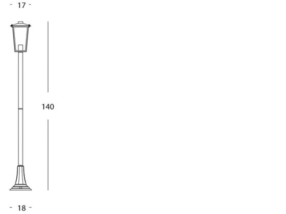 Rostfarbene Gartenmastlampe für die Notorius-Linie im Freien. Struktur komplett aus Aluminium-Druckguss. Korrosionsschutzbehandlung mit Epoxidpulverlackierung. Glasdiffusoren in transparenter Platte. Aufhängung mit Gegenplatte zur Deckenbefestigung aus hochbeständigem Thermoplast. Stromkabel H05RN-F 3G1 mmq. Mast mit internem Stromkabel und Anschlussvorrichtung. Messingschrauben und Befestigungszubehör. Lampenfassung aus Porzellan mit Fassung E27. Passende Lampenfassungsabdeckung aus Aluminium. Geeignet für Glüh- und Energiesparlampen. Lampe nicht enthalten. Stromversorgung 230V ~ 50Hz. Schutzklasse: IP43 Maximale Lampenleistung: 60W