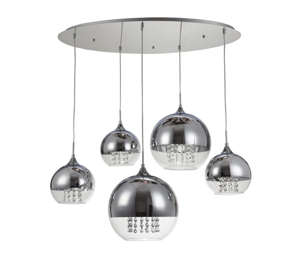 Metallstruktur. Diffusoren aus Chrom und Glas mit dekorativen Kristallen (optional).