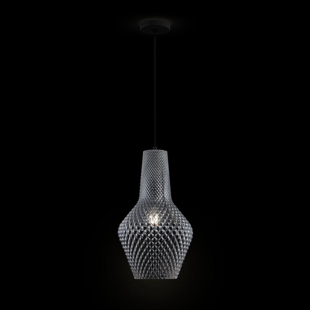 Die gestreifte Oberfläche der Diffusoren aus mundgeblasenem Glas. Die Struktur ist aus Metall. Die Höhe der Lampen ist durch die Länge des Drahtes verstellbar.