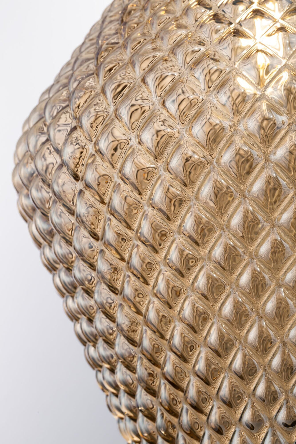 Die gestreifte Oberfläche der Diffusoren aus mundgeblasenem Glas. Die Struktur ist aus Metall. Die Höhe der Lampen ist durch die Länge des Drahtes verstellbar.