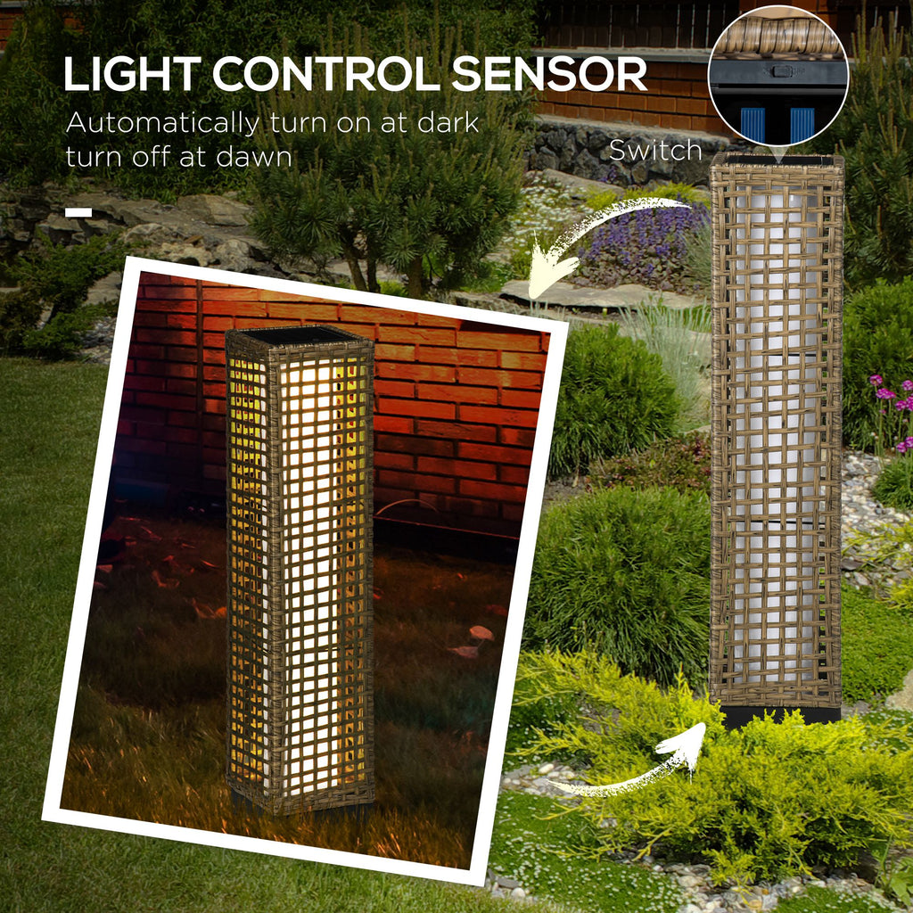 Lampada Solare da Giardino con Pannello di Ricarica 15,5x15,5x69 cm in Acciaio e Rattan Nero e Marrone