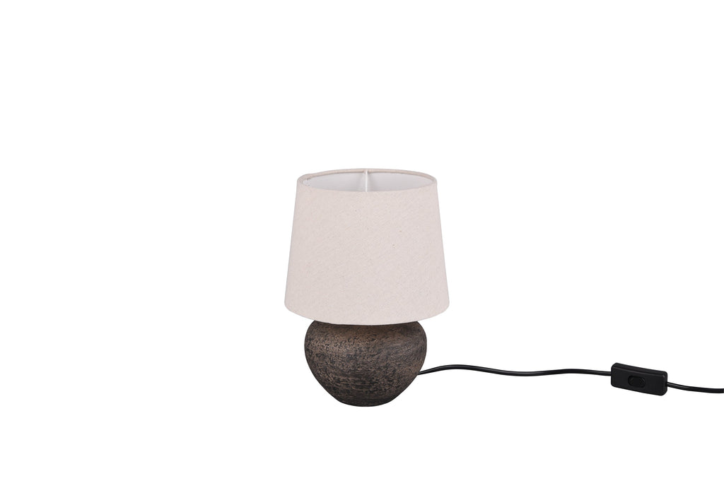 Lou Tischlampe Brauner Keramiksockel in Antikoptik mit sandfarbenem Lampenschirm H. 25 cm