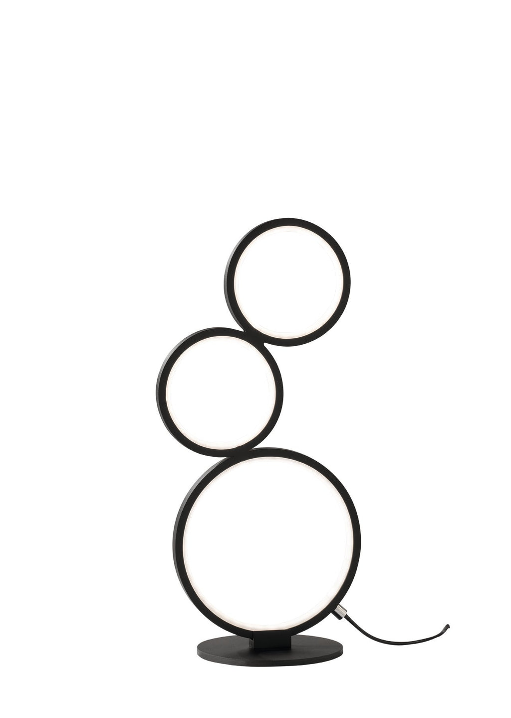 Rondo Tischlampe LED 3 Kreise Mattschwarzes Metall mit Dimmer H. 45Cm