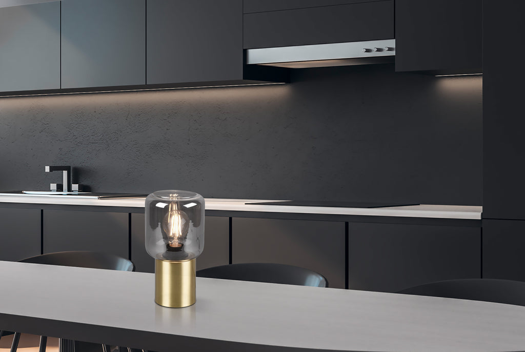 Nico Tischlampe Rauchglas Satinierter Messingsockel H. 24Cm