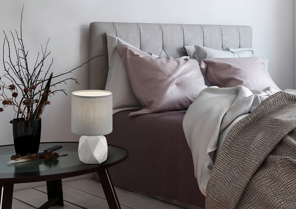 Pike-Tischlampe mit Rhombus-Betonsockel und grauem Lampenschirm H. 28 cm T. 16 cm
