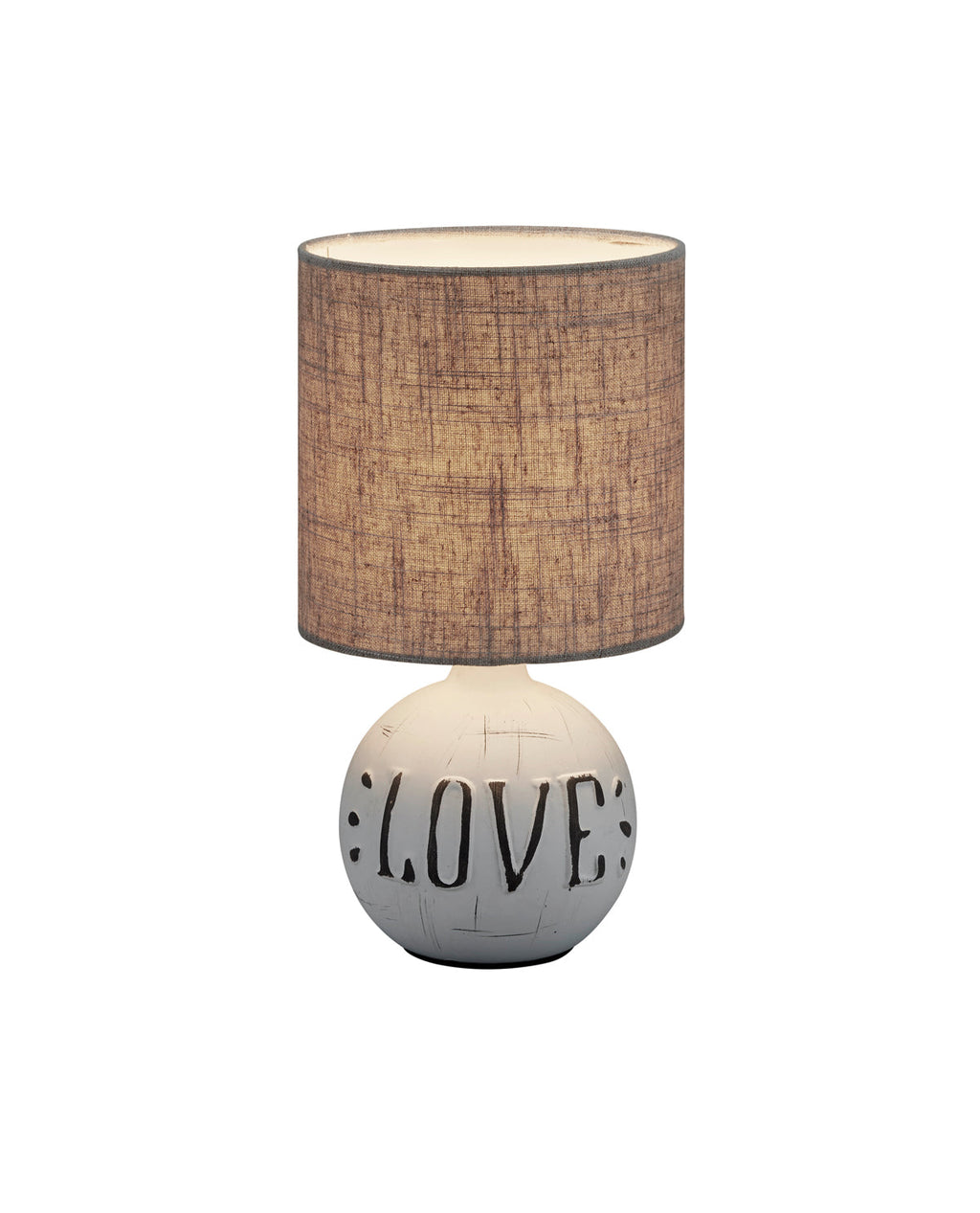 Esna Keramik-Tischlampe mit Aufschrift "Love" Sand mit braunem Lampenschirm H.30Cm
