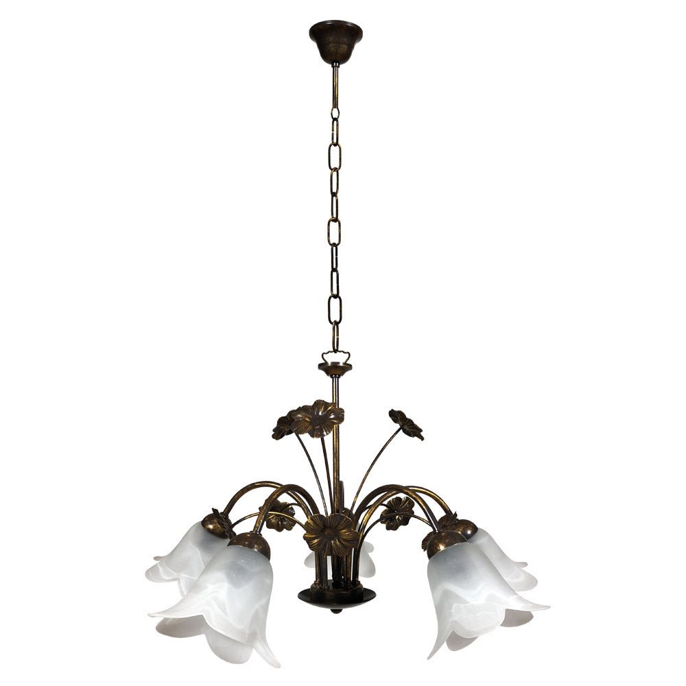Kronleuchter 5xE14 Braun Gold Rahmen Weißes Alabasterglas E-Energy Vera